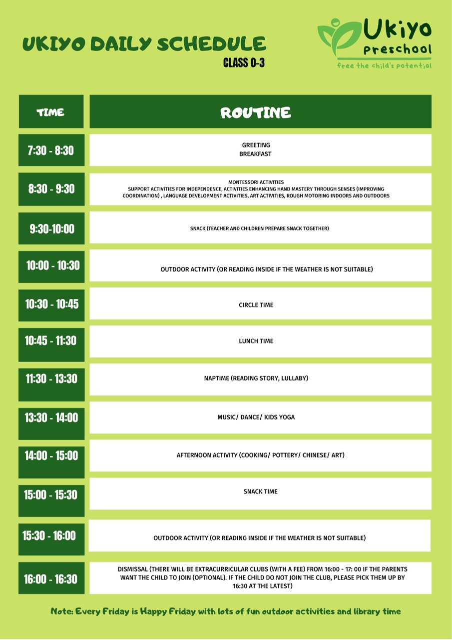 The 3 first years of life is a time to explore, a time to see, to touch, and to hear, to establish trust, to begin the development of language, a time to take the first steps towards independence. Montessori education is based on observation for over a century Montessori has been observing young children and create a learning environment that responds to the developmental needs of early childhood. Infants learn faster than any other time in life. Maria Montessori referred to this learning process as the unconscious absorbent mind. By this, she meant that infants have the ability to absorb knowledge and the capability to teach themselves. The human brain has a remarkable capacity to adapt and change but timing is crucial while learning continues through the life cycle. There are optimal periods which Montessori called sensitive periods. During sensitive periods, a child can learn rapidly if the opportunity is provided. After the sensitive period has passed he may find it more difficult to absorb these skills and information. That the reason, Ukiyo provides a well-prepared environment and well-trained adults to support children.