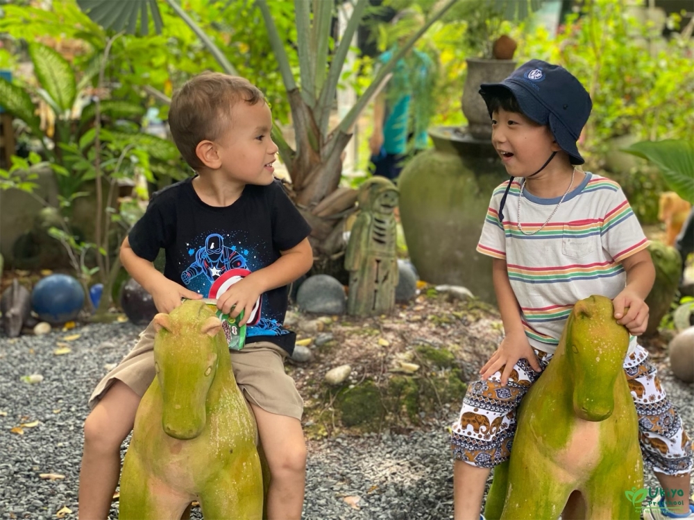 Vườn Nhà Gốm (Bình Dương) là một điểm đến cực kì thú vị mà các bạn nhỏ Ukiyo rất mong chờ trong hành trình Summer Camp 2022 này. Một chuyến đi xa cùng nhau đem đến sự háo hức và hồi hộp rất nhiều cho các con. Trên đường đi, các bạn được dịp ngắm nhìn phong cảnh hai bên đường, được thấy rất nhiều phương tiện giao thông khác nhau, được nhìn máy bay bay trên bầu trời, những chú chim bay ngang… rồi chuyện trò rôm rả thật vui.