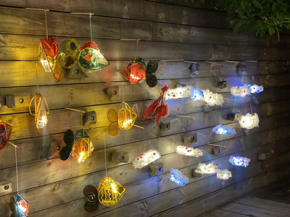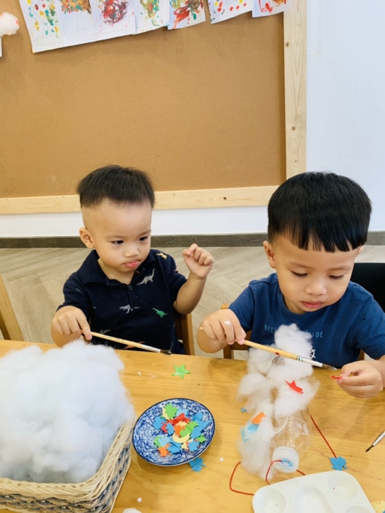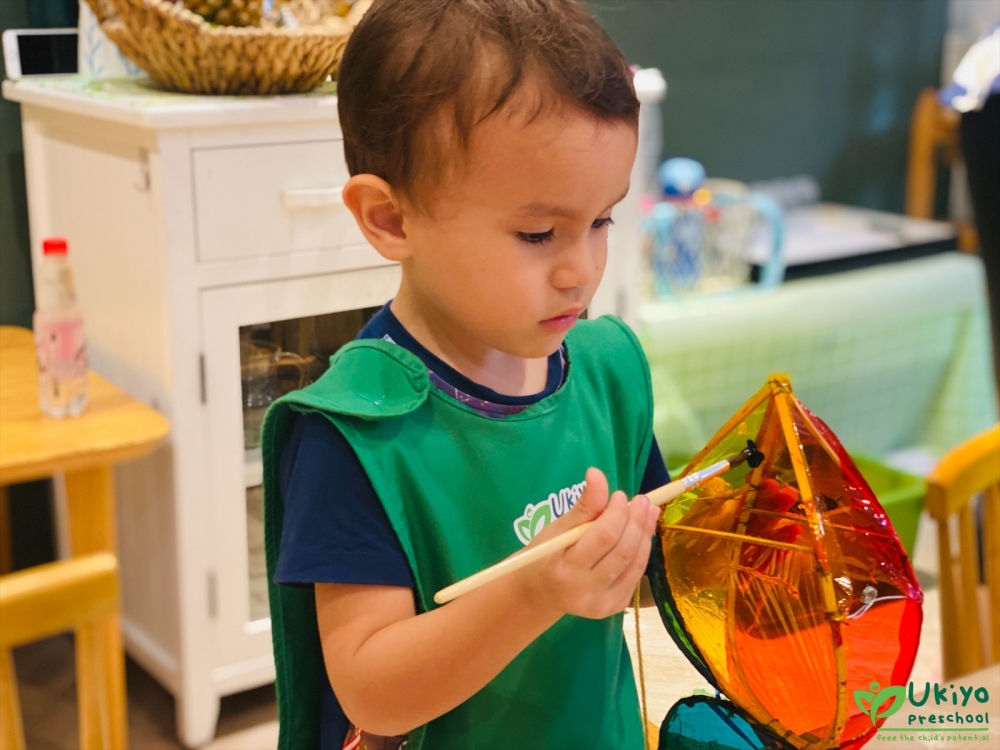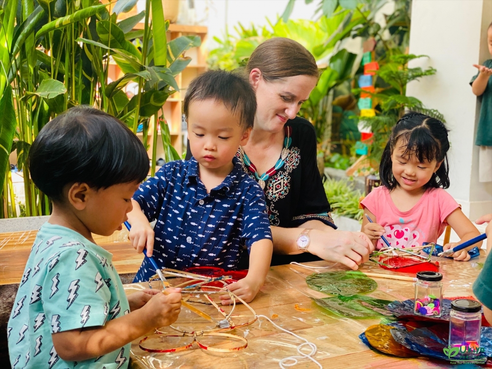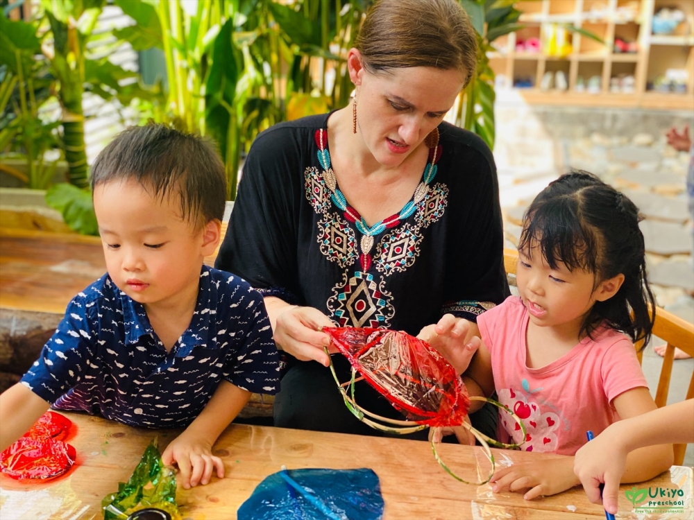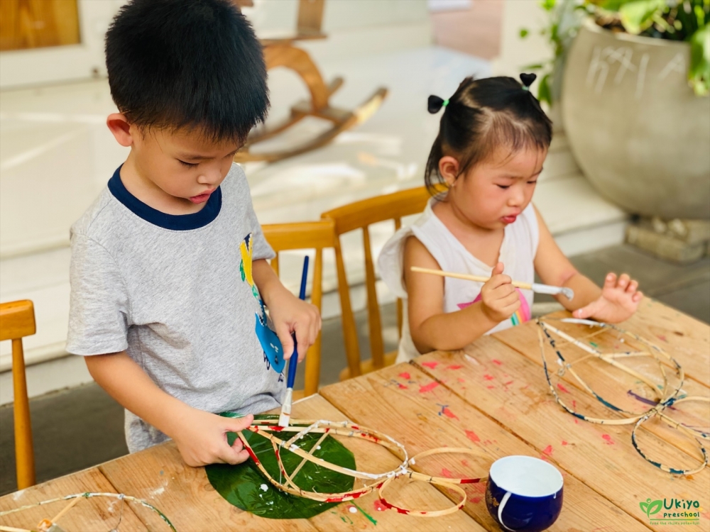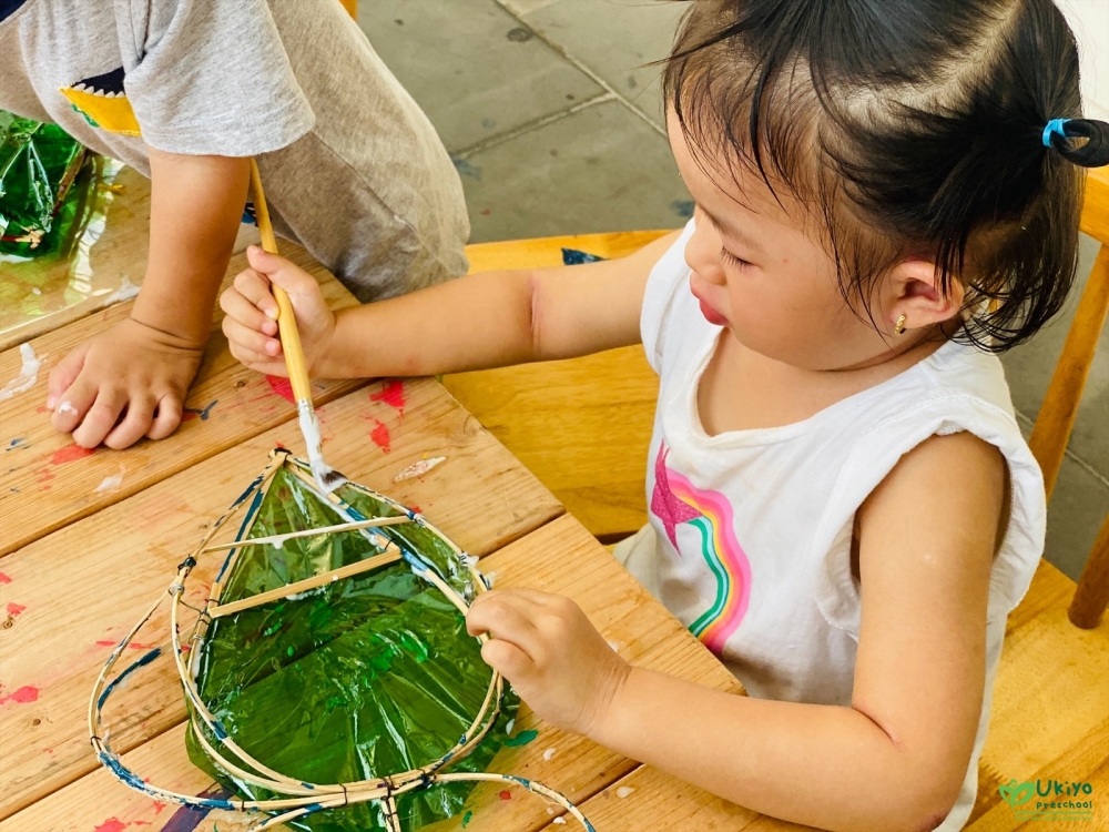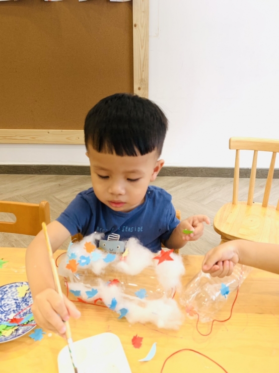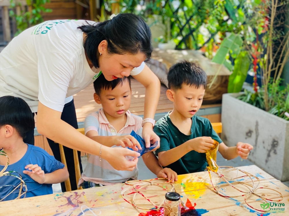 Những chiếc đèn lồng đầy màu sắc được các con cẩn thận, tỉ mỉ trang trí.