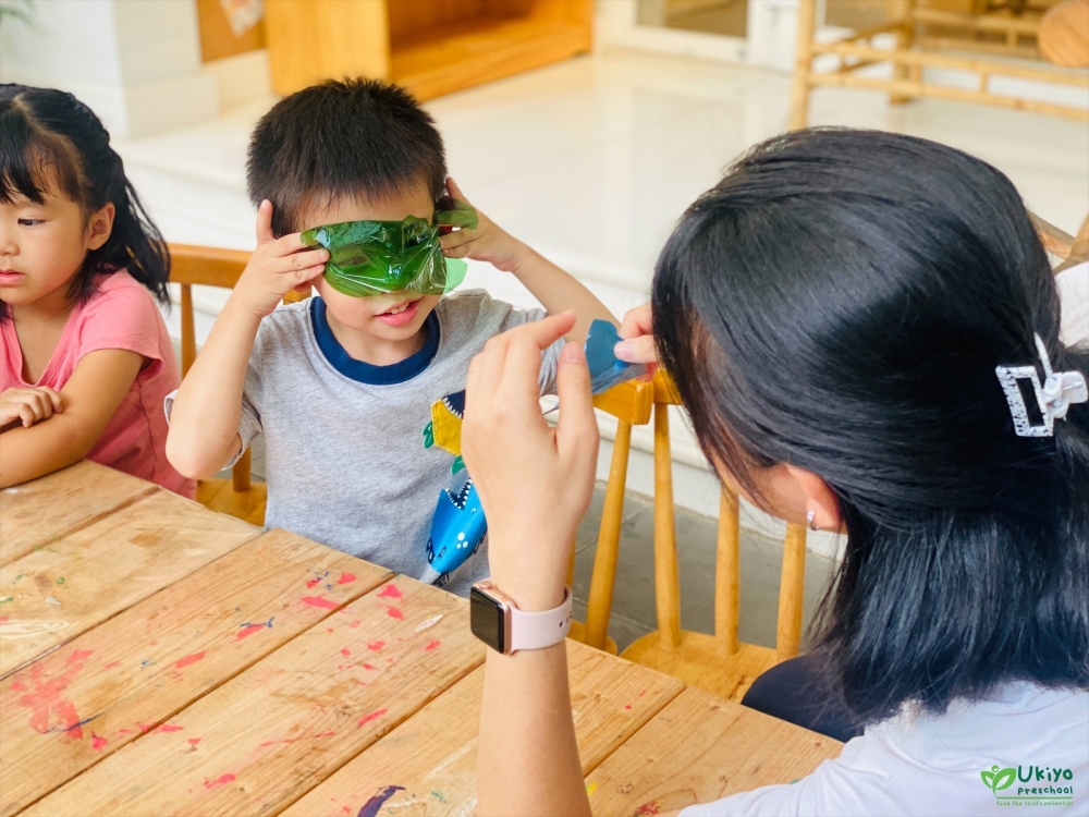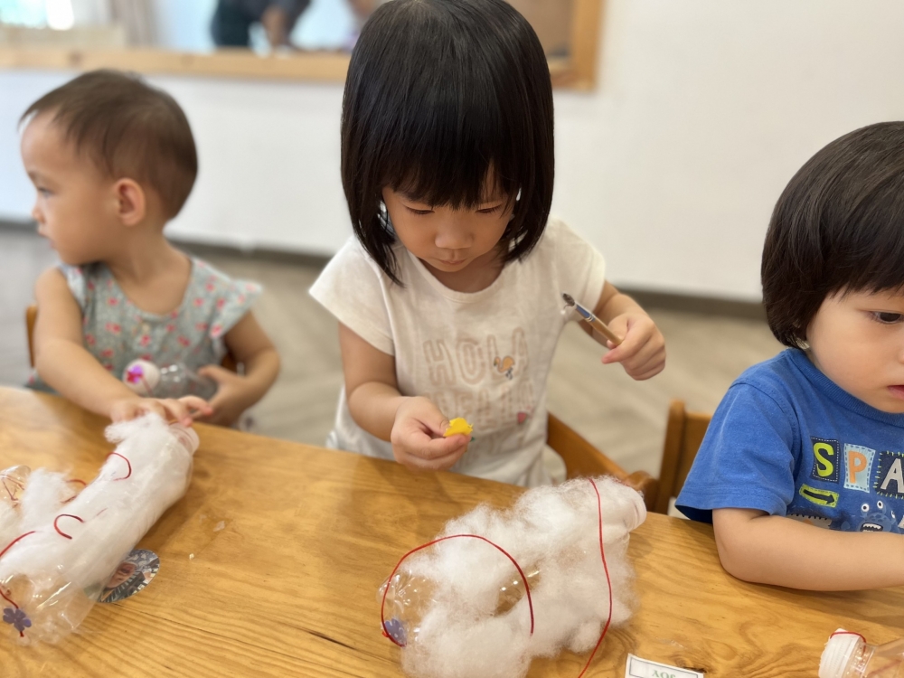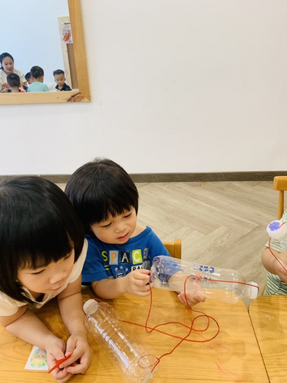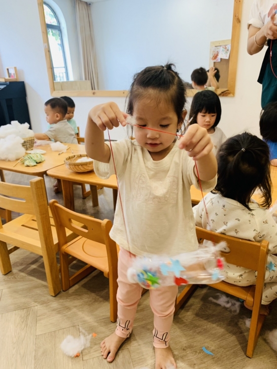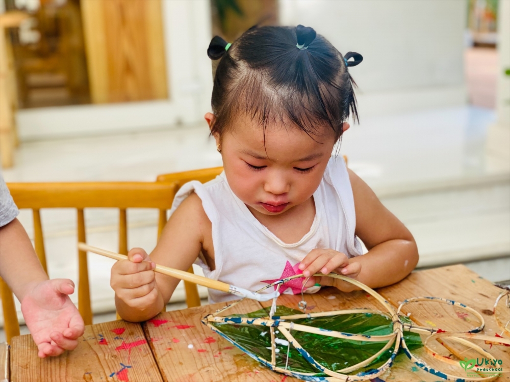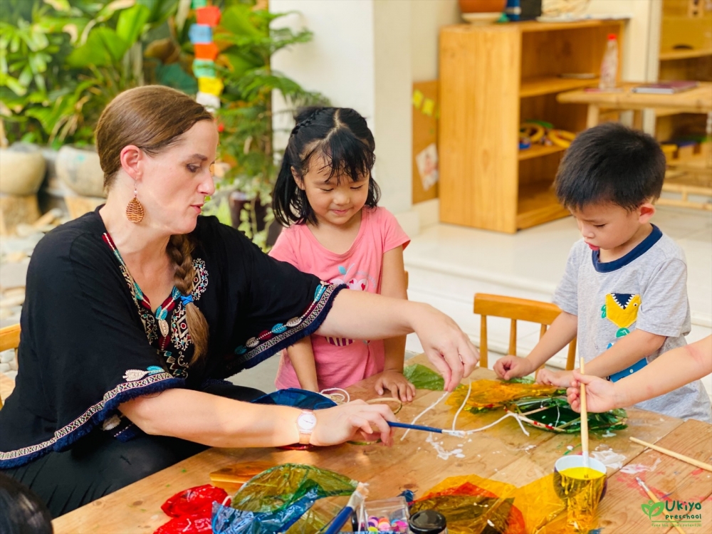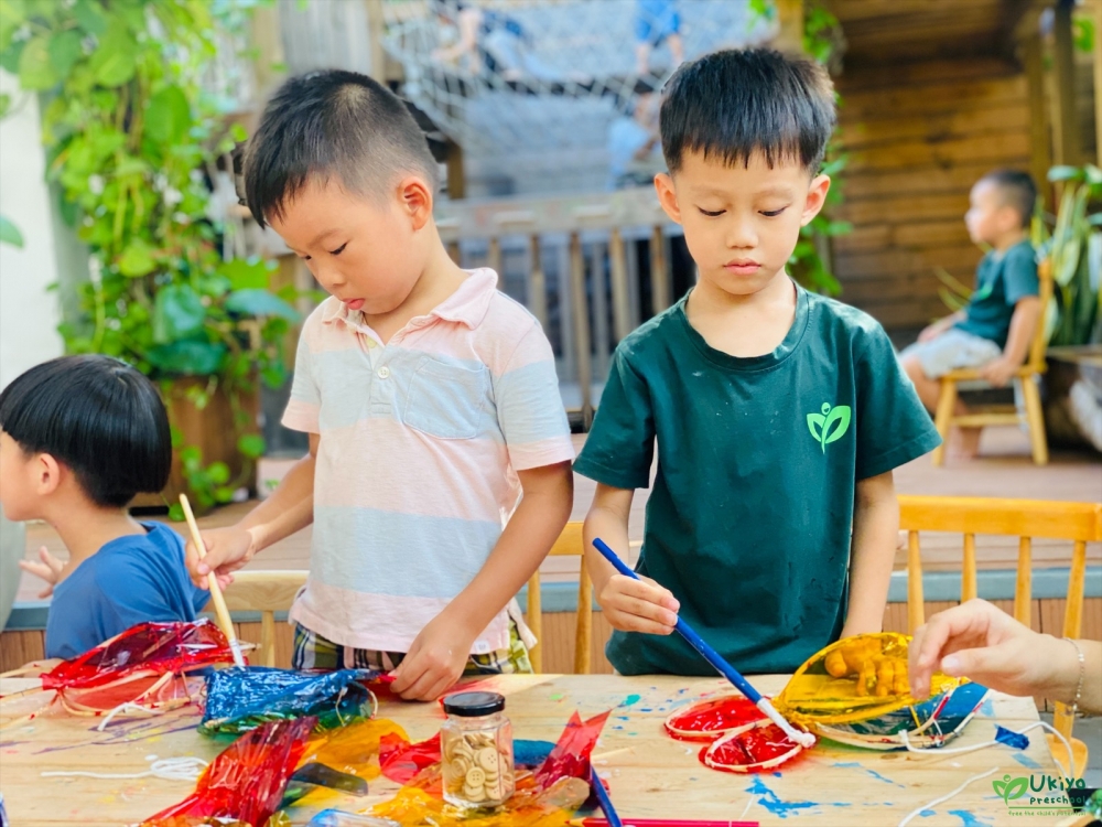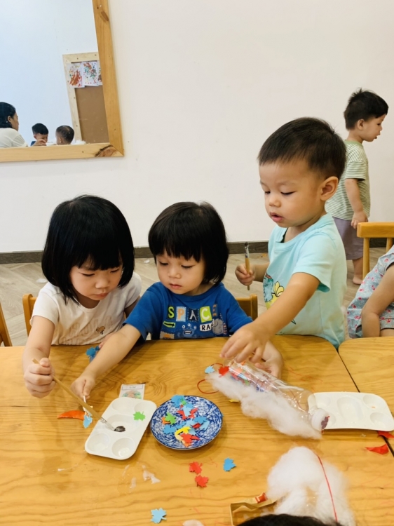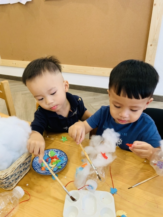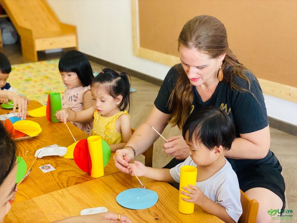 Những chiếc đèn lồng đầy màu sắc được các con cẩn thận, tỉ mỉ trang trí.