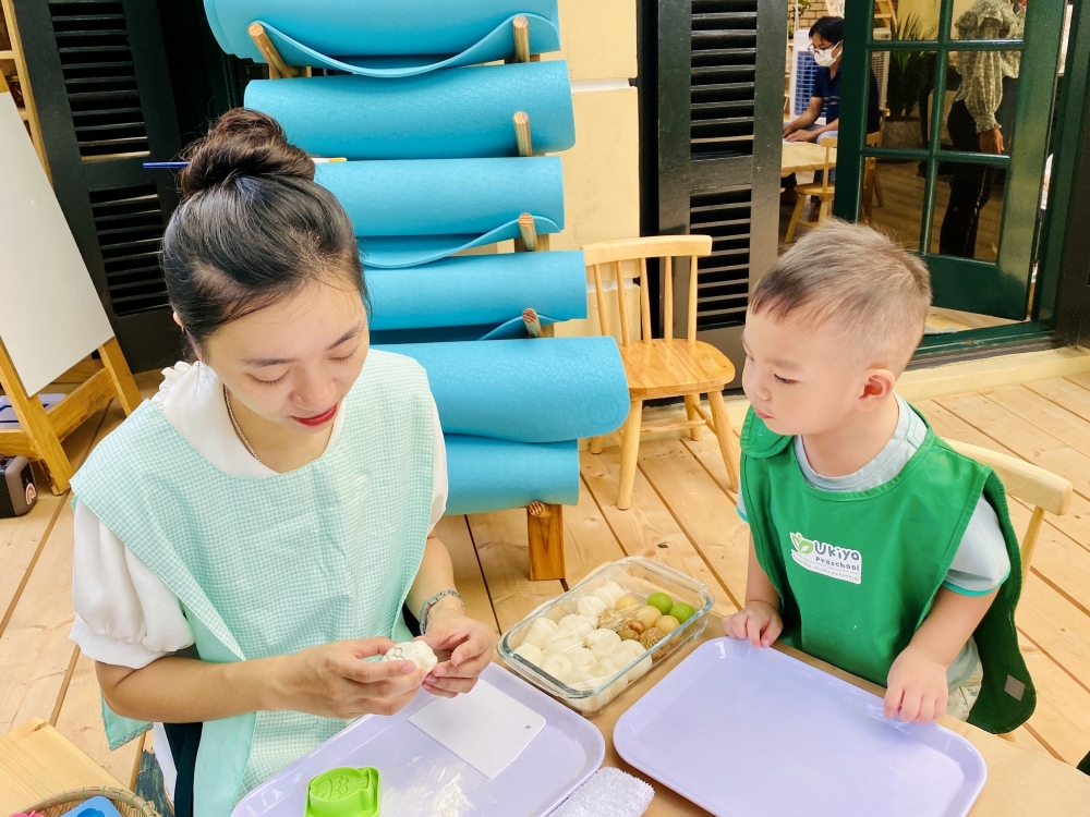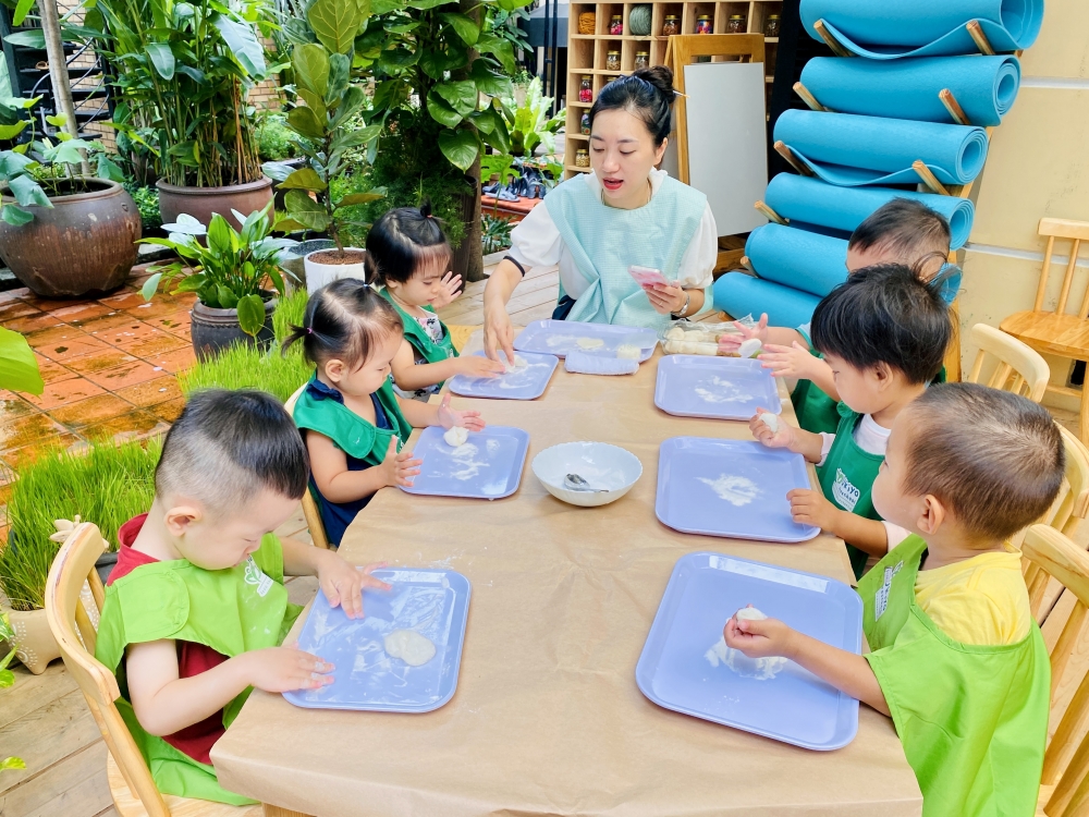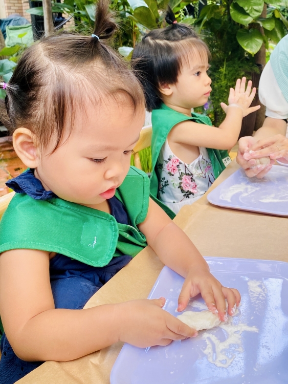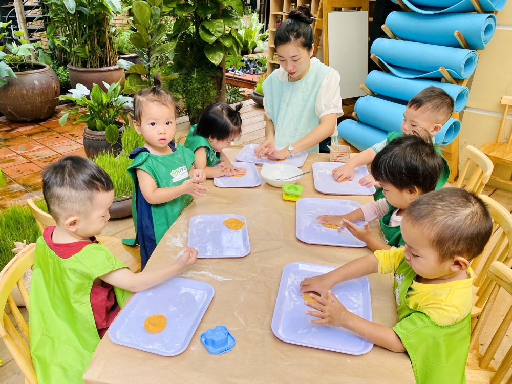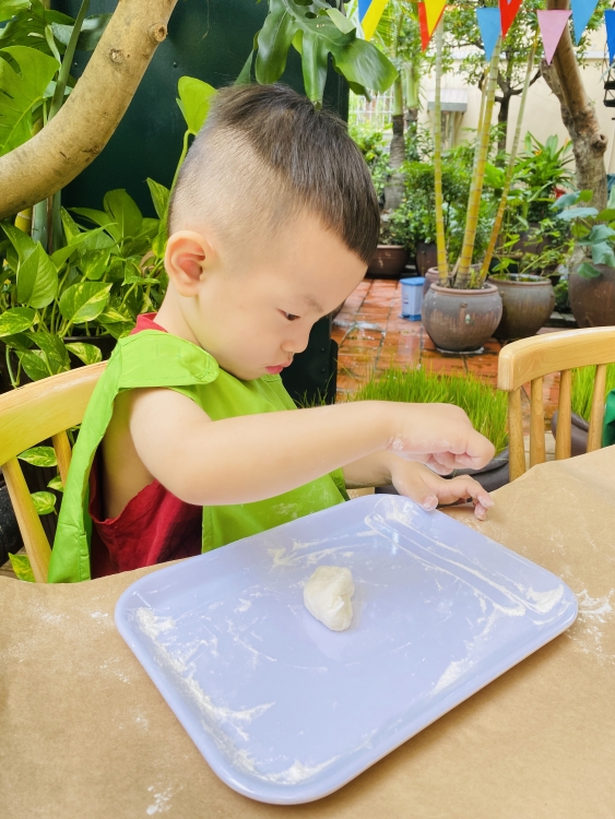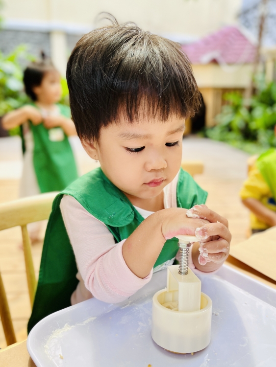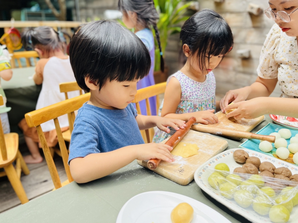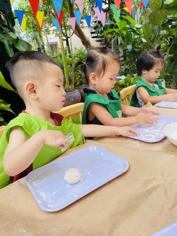 Những đôi bàn tay be bé xinh xinh khéo léo nặn hình những chiếc bánh Trung thu đẹp đẽ.