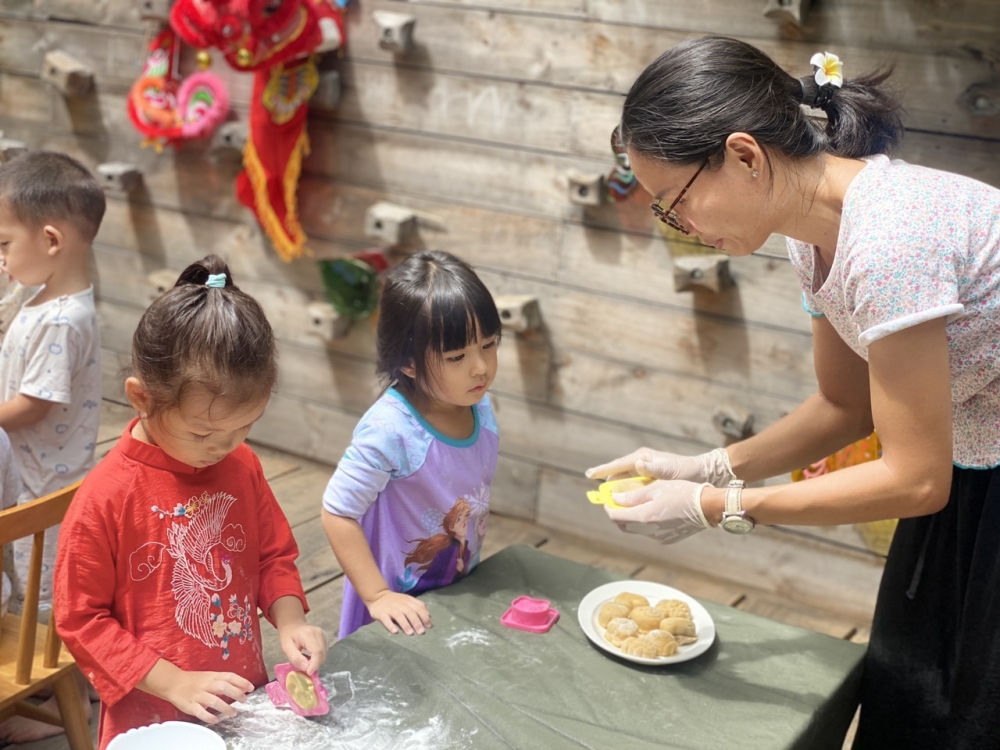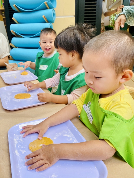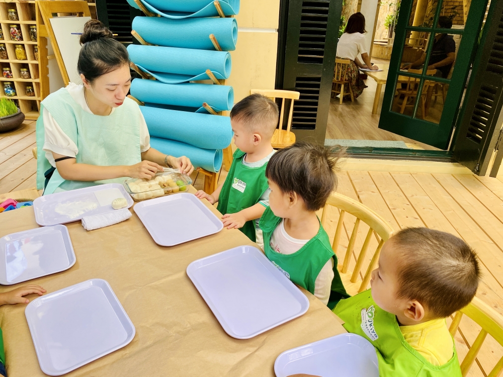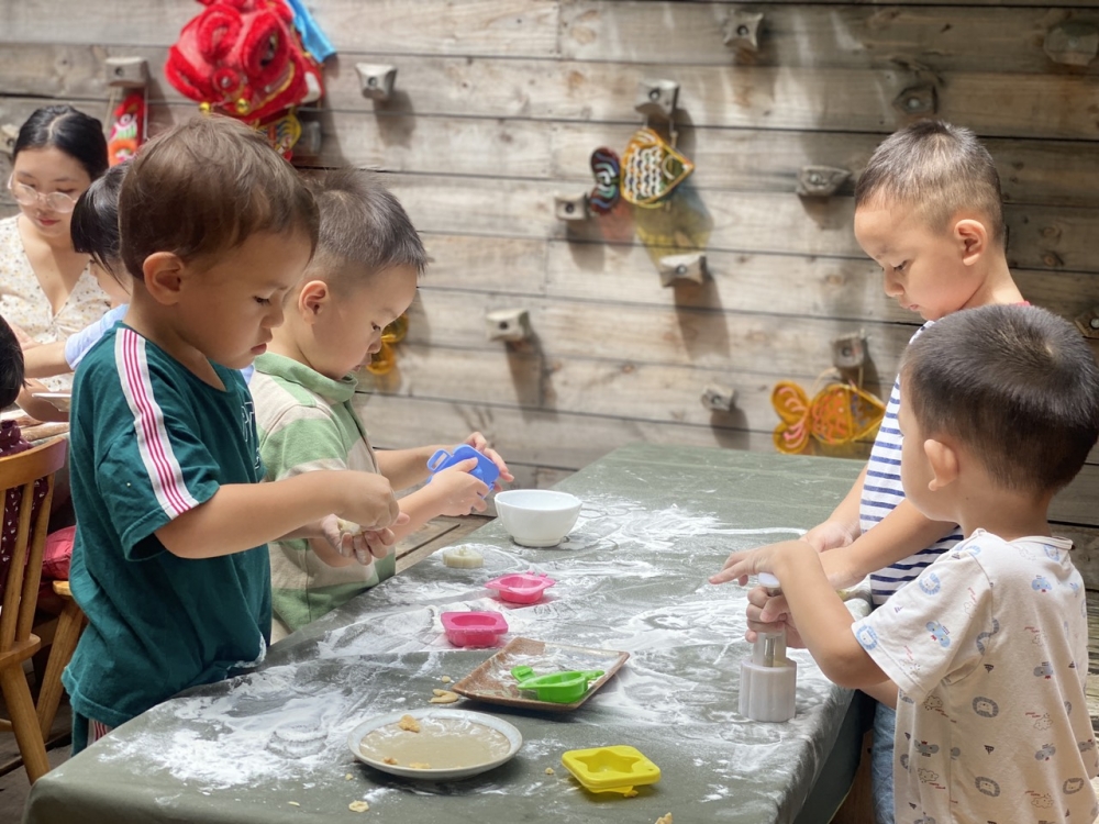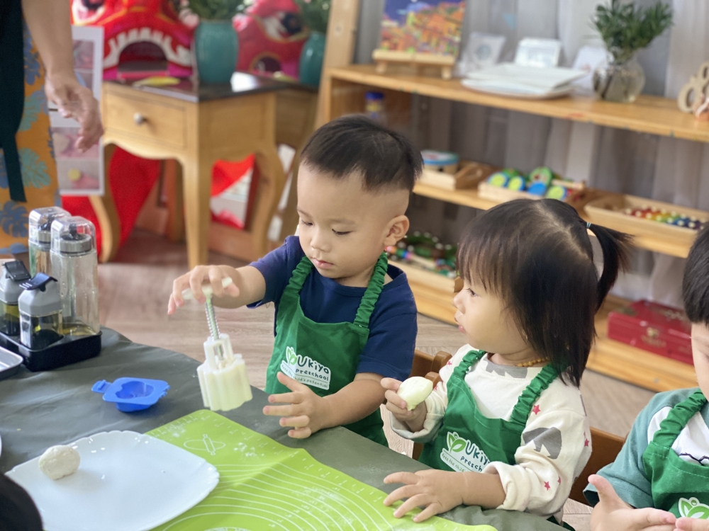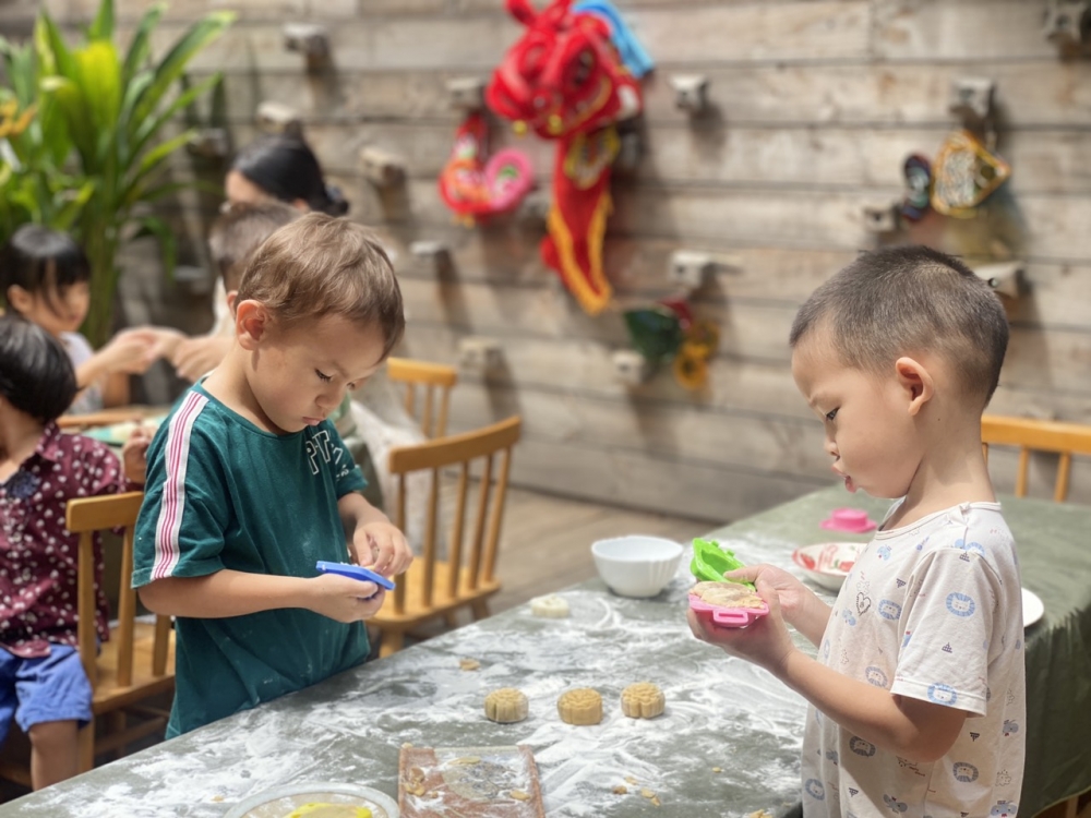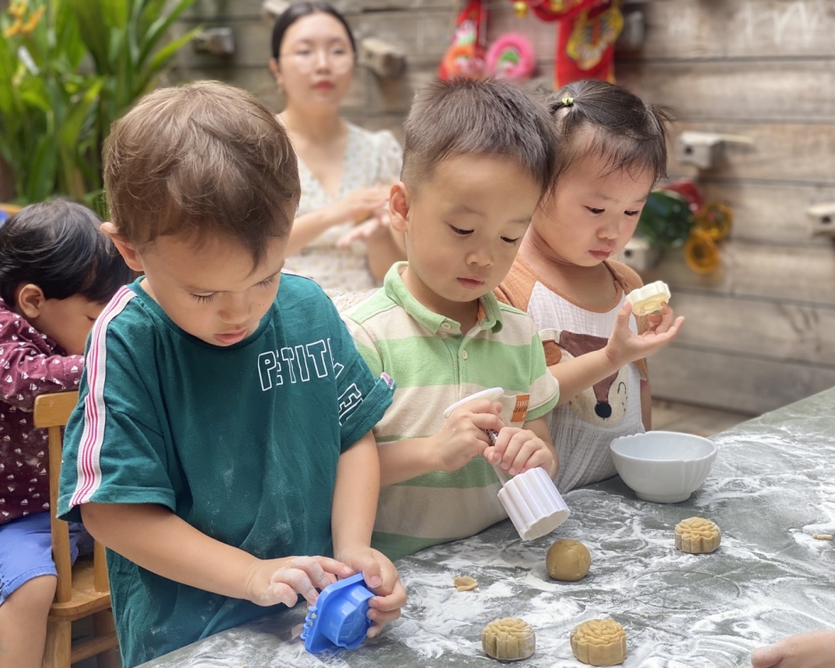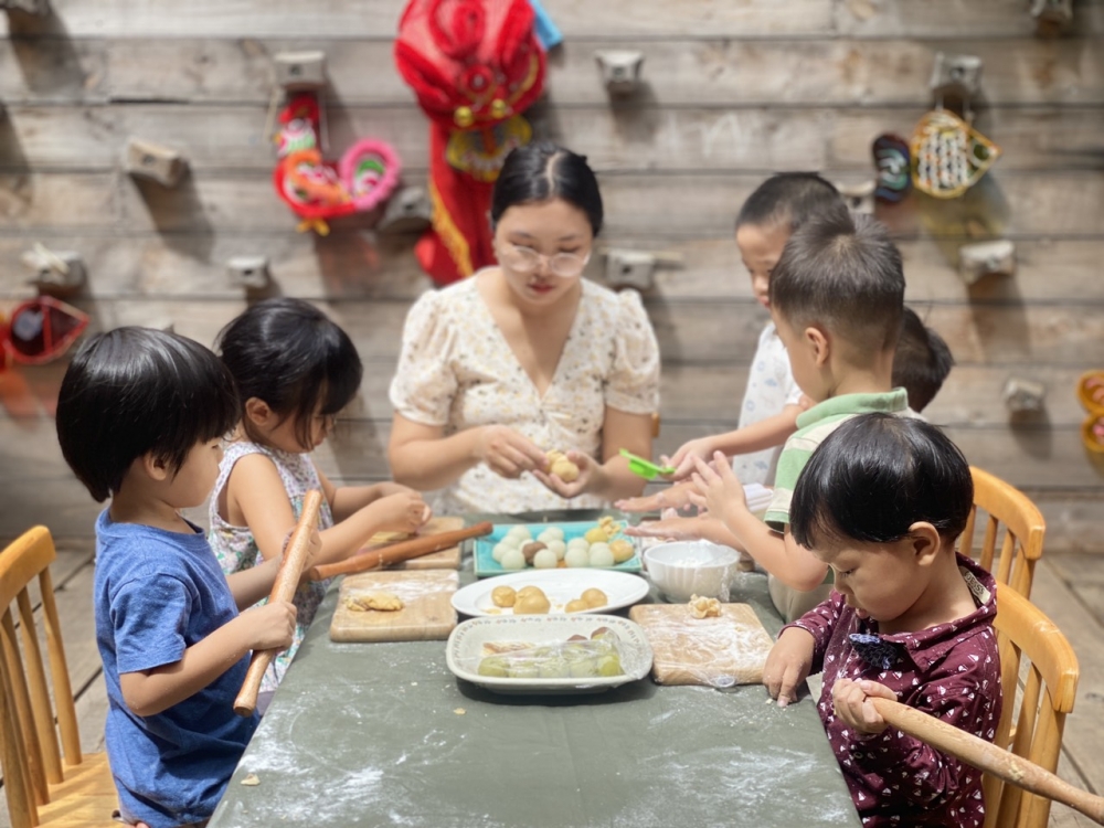 Những đôi bàn tay be bé xinh xinh khéo léo nặn hình những chiếc bánh Trung thu đẹp đẽ.