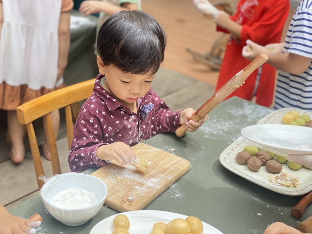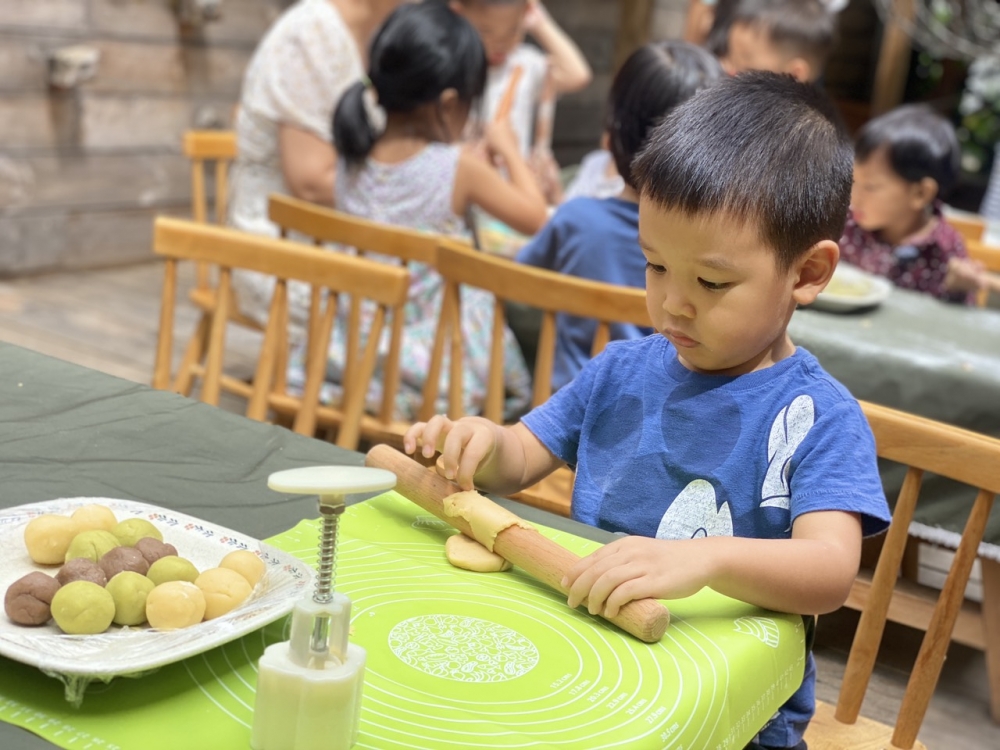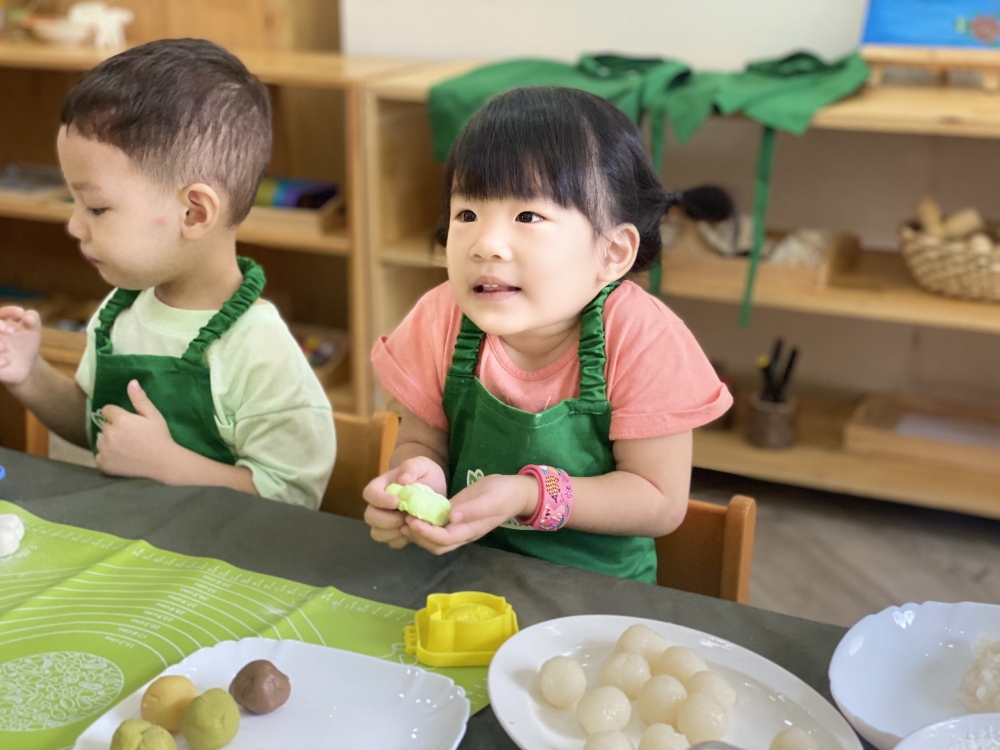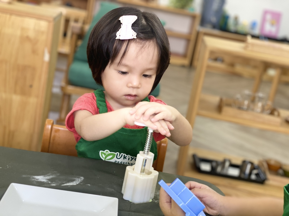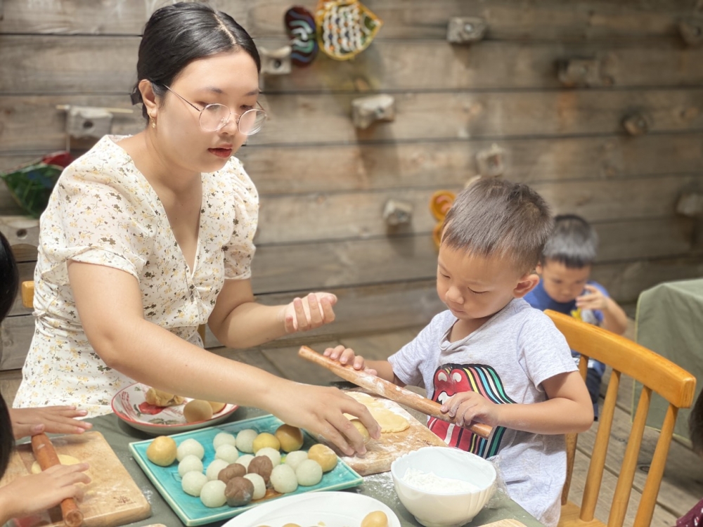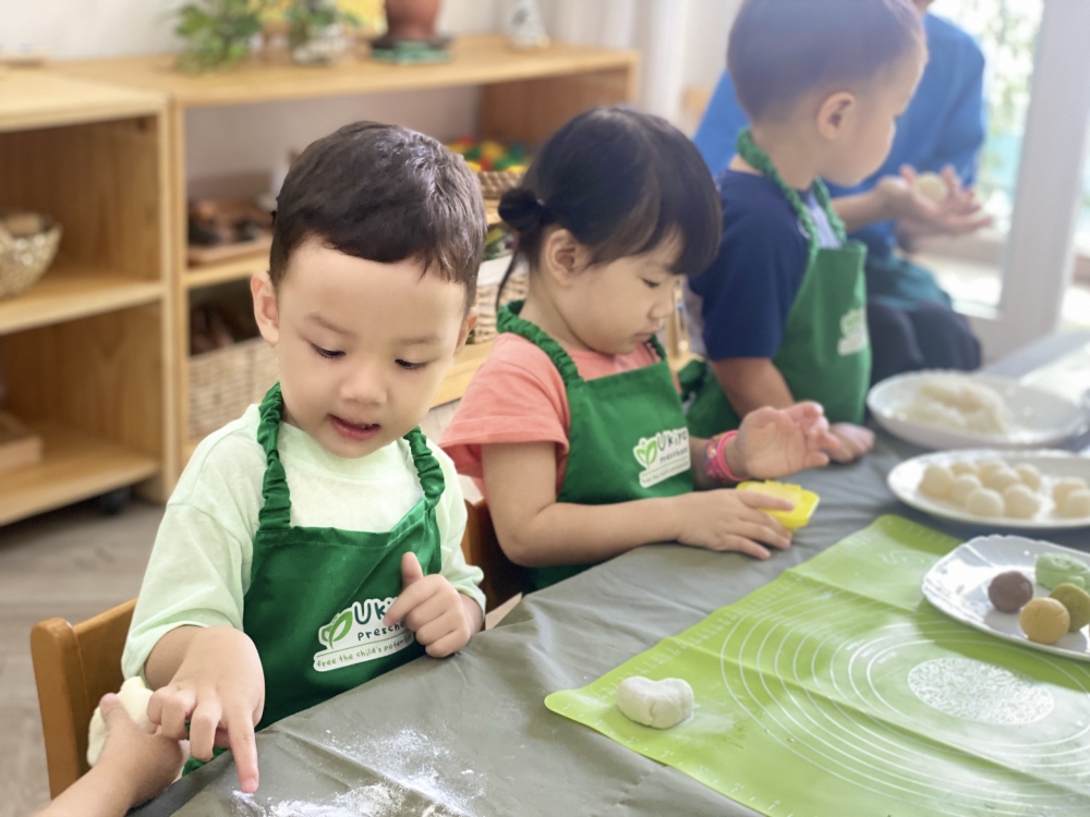 Những đôi bàn tay be bé xinh xinh khéo léo nặn hình những chiếc bánh Trung thu đẹp đẽ.