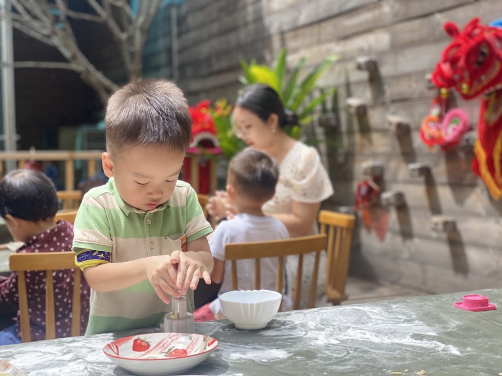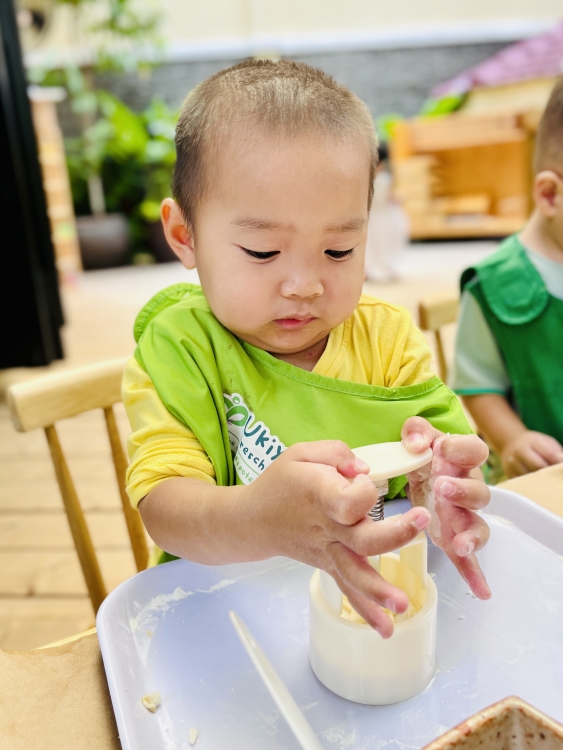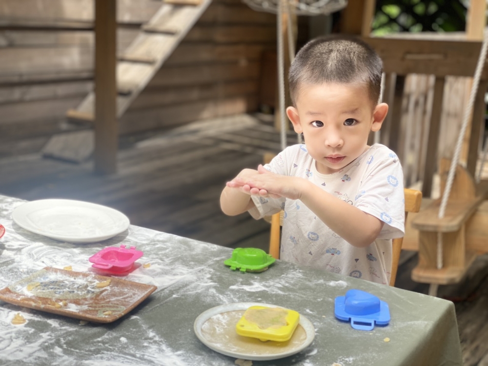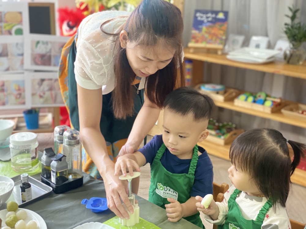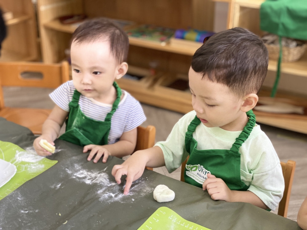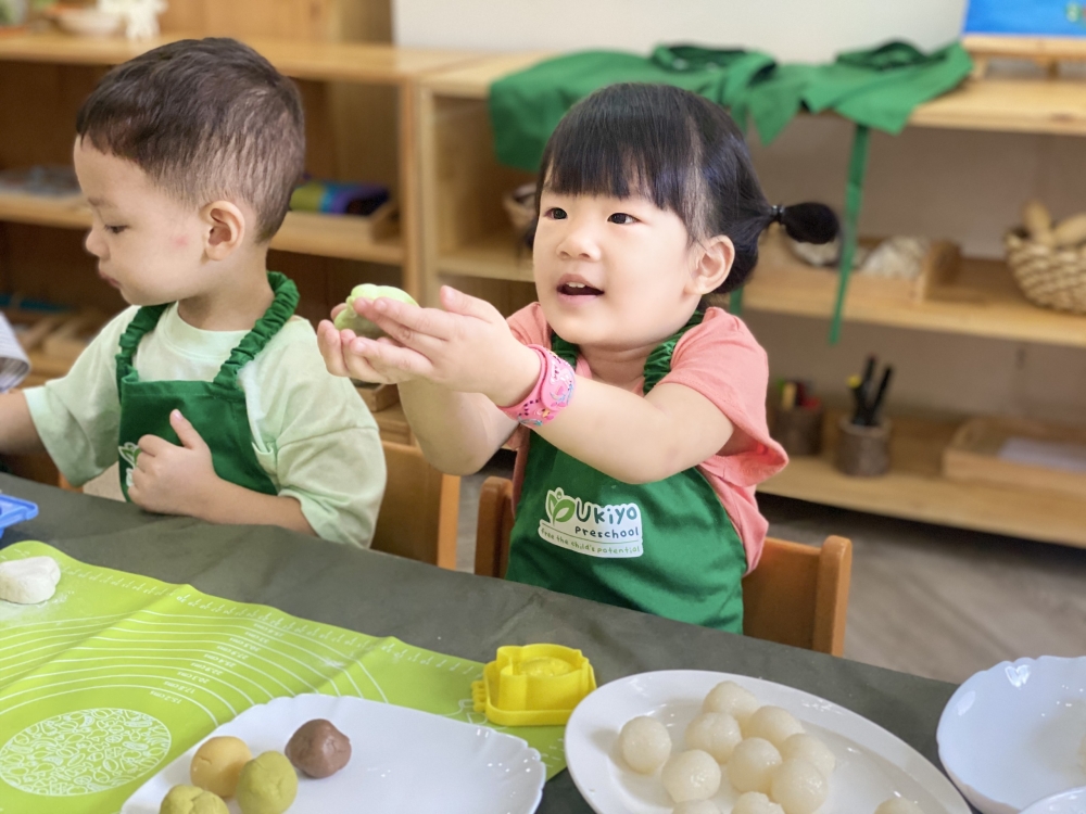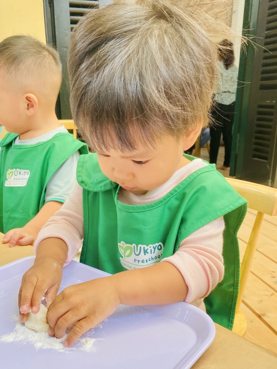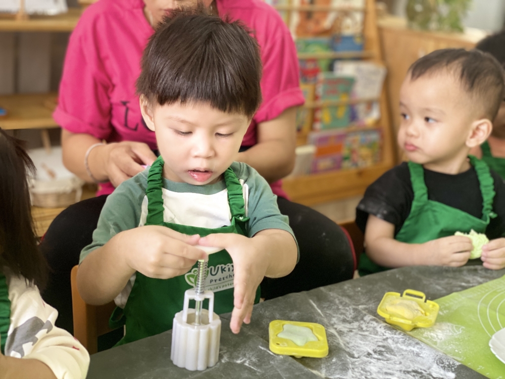 Những đôi bàn tay be bé xinh xinh khéo léo nặn hình những chiếc bánh Trung thu đẹp đẽ.